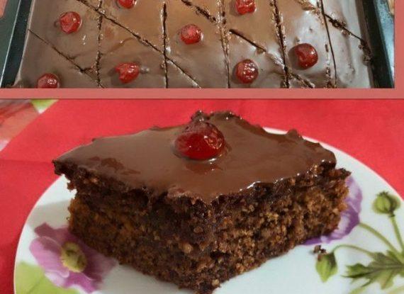 ‘Λιώνουμε την σοκολάτα με το ηλιέλαιο και το απλώνουμε πάνω στο γλυκό.