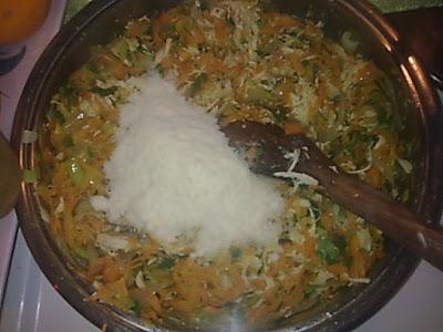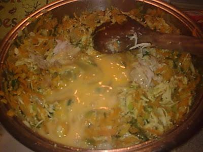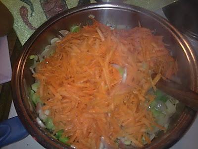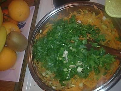 Ετοιμάζουμε όλα τα υλικά ,τρίβουμε τα καρότα.κόβουμε σε ροδέλες τα κρεμμύδια φρέσκα ,ξερά,ψιλοκόβουμε μαϊντανό άνηθο.