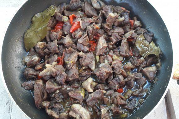 Το αγριογούρουνο το φτιάξαμε τηγανιά γιατί ήταν γύρω στα 20 κιλά. Αν ήταν μεγαλύτερο σε βάρος θα έπρεπε να το βάλουμε στην χύτρα πρώτα.