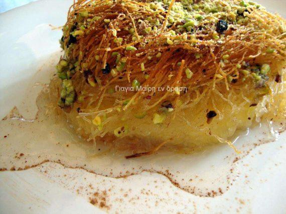 2 πακέτα φύλλο κανταΐφι 1 λίτρο γάλα 110 γραμ ζάχαρη 110 γραμ σιμιγδάλι ψιλό 1 κουταλιά βούτυρο για την κρέμα 1 κούπα βούτυρο λιωμένο για τα φύλλα κανταΐφι 4 αβγά ξύσμα από 1/2 λεμόνι και 2 βανίλιες μια χούφτα τριμμένο φιστίκι Αιγίνης ς που θα μπει όταν είναι ψημένα τα γαλακτομπούρεκα γιατί αν το βάλετε πριν τα ψήσετε θα σας καεί το φιστίκι!