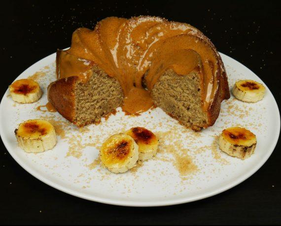 Υπέροχο, μυρωδάτο και πεντανόστιμο κέικ μπανάνας, με πούδρα αμυγδάλου, καστανή ζάχαρη, κρέμα γάλακτος, βανίλιες και κανέλα. Ένα αφράτο κέικ γεμάτο γεύσεις και αρώματα, τι καλύτερο μαζί με ένα ένα φλιτζάνι καφέ. Ιδανικό σνακ για τη δουλειά ή το απογευματινό κολατσιό. Φτιάξτε το είναι εύκολο, γρήγορο αλλά και εντυπωσιακό, μπορείτε να το γαρνίρετε με λιωμένη σοκολάτα ή σως καραμέλας και να τους εντυπωσιάσετε όλους!