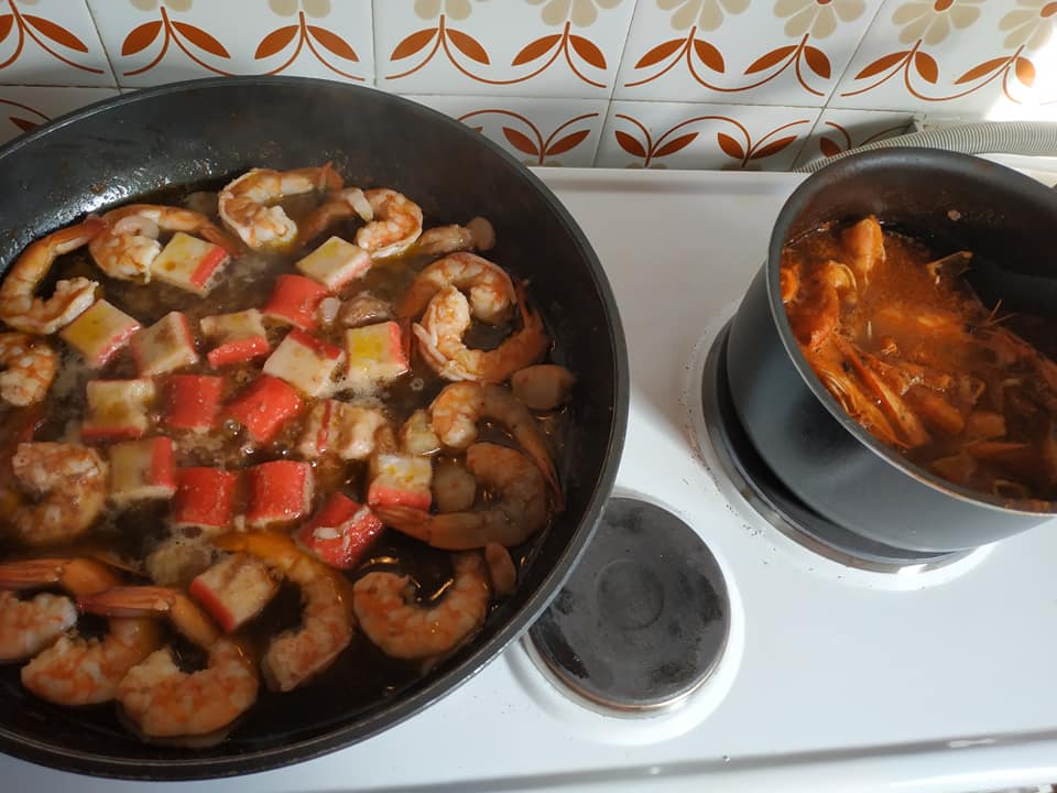 - ζωμό από τα κεφάλια και το κέλυφος των ουρών της γαρίδας