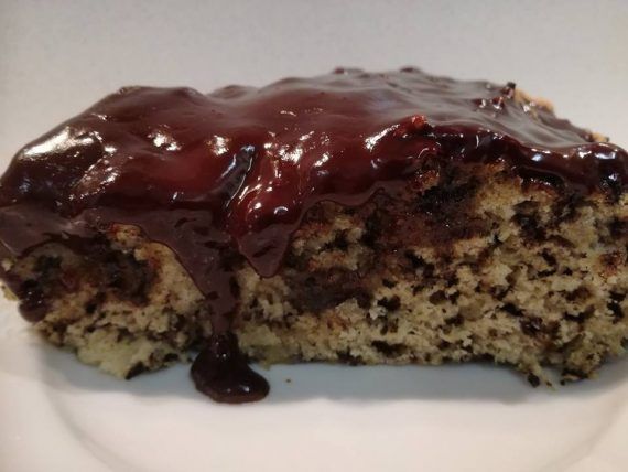 ΣΥΝΘΕΣΗ • Μόλις βγάλουμε το κέικ από το φούρνο το τρυπάμε σε διάφορα σημεία με τη βοήθεια μιας οδοντογλυφίδας ώστε να απορροφήσει περισσότερο σιρόπι και όπως είναι ζεστό το σιροπιάζουμε με το κρύο σιρόπι. • Το αφήνουμε να κρυώσει και το περιχύνουμε με τη σοκολάτα. Καλή μας όρεξη!