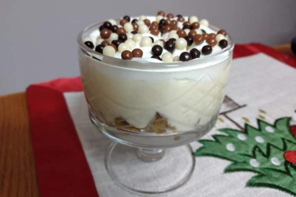 Γλυκό σε ποτήρι με κρέμα και τα μελομακάρονα που περίσσεψαν