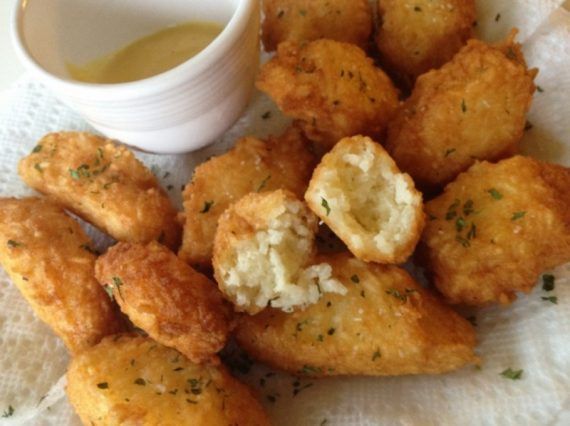 Τι θα χρειαστούμε: 2 κούπες ρύζι βρασμένο 1 κρεμμυδάκι ψιλοκομμένο 1-3 κ.σ. μαϊντανό ψιλοκομμένο ½ κούπα τριμμένα κίτρινα τυριά 2 αυγά Πιπέρι αλεύρι