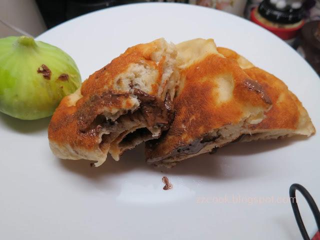 Εκτέλεση: Ζεσταίνουμε το γάλα με το βούτυρο μέσα. Διαλύουμε το μισό αλεύρι στο γάλα ( το γάλα σε θερμοκρασία να δέχεται το χέρι μας) ανακατεύοντας με το σύρμα χειρός ή με ένα κουτάλι. Προσθέτουμε και τη μαγιά με τη ζάχαρη… Προσθέτουμε και το υπόλοιπο αλεύρι με το αλάτι σε 2-3 δόσεις τώρα θέλει λίγο χεράκι να το διπλώσουμε 4-5 φορές. Η ζύμη είναι απαλή σχεδόν δεν κολλάει στα χέρια…απο τα 500 γρ, αλεύρι μου περίσσεψαν 30 γρ, ανάλογα το αλεύρι πάντα, το χρησιμοποίησα για να ανοίξω τα πιτάκια Σκεπάζουμε τη ζύμη και περιμένουμε να διπλασιαστεί. Χωρίζουμε τη ζύμη σε 8-10 κομμάτια, τα κάνουμε μπαλάκια με αλευρωμένα λίγο τα χέρια μας. Ανοίγουμε λίγο όσο ένα πιατάκι και βάζουμε στο κέντρο 1-2 κουταλάκια μερέντα ή άλλη σοκοκρέμα ότι μας αρέσει. Ζεσταίνουμε ηλιέλαιο στο τηγάνι και τηγανίζουμε 2 λεπτά από την κάθε πλευρά γίνονται γρήγορα πολύ. Προσέχουμε το μάτι να είναι στο 7-8 της κουζίνας να μην μας αρπάξουν…