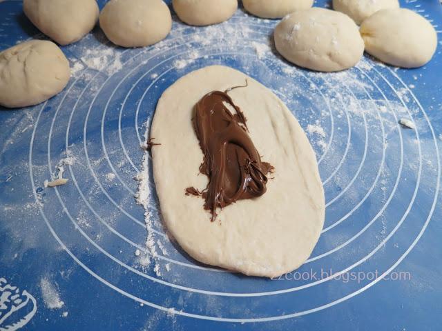 Υλικά: 500 γρ, αλεύρι 300 γρ γάλα 1 κουταλιά ζάχαρη 1 φακελάκι μαγιά 1 κουταλάκι αλάτι 2 κουταλιές βούτυρο λιωμένο …μερέντα