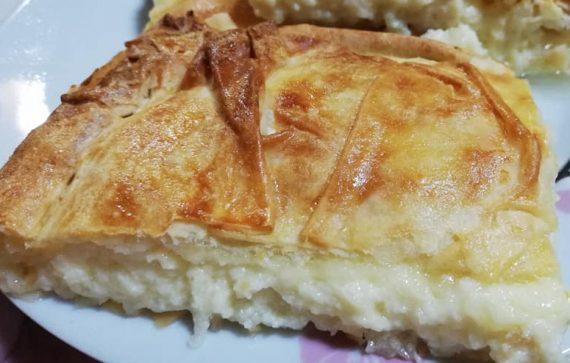 Συνταγή για πεντανόστιμη πίτα με γραβιέρα, σιμιγδάλι και κρεμώδη γέμιση τυριών. Μία ξεχωριστή πίτα με γραβιέρα για το επίσημο και οικογενειακό τραπέζι, για κολατσιό ή απογευματινό και βραδινό σνακ.