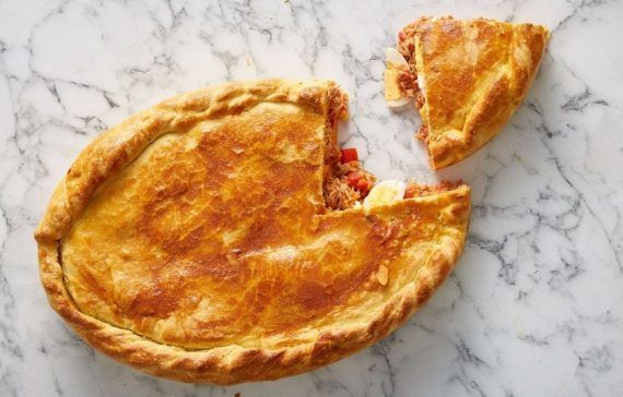 Για τη γέμιση 4 αυγά (σφιχτοβρασμένα, καθαρισμένα και κομμένα σε φέτες) 2 μέτρια ξερά κρεμμύδια, ψιλοκομμένα 1 μεγάλη κόκκινη πιπεριά, ψιλοκομμένη (εμείς, λόγω εποχικότητας, μπορούμε να βάλουμε πιπεριά Φλωρίνης από βάζο, καλά στραγγισμένη) 4 κουτ. σούπας ελαιόλαδο 500 γρ. ολόκληρα ντοματάκια κονσέρβας, ψιλοκομμένα 600 γρ. τόνος από κονσέρβα (καθαρό βάρος), προτιμότερο Αλοννήσου αλάτι, καυτερή πάπρικα