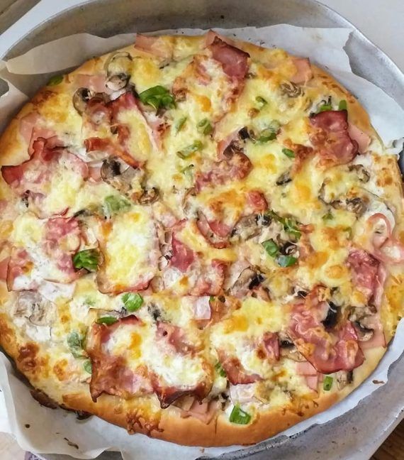 Συνταγή για πίτσα με κρέμα γάλακτος, μπέικον, μανιτάρια και διάφορα τυριά! Φτιάξτε τη δική σας σπιτική πίτσα καρμπονάρα για όλη την οικογένεια με τα αγαπημένα σας υλικά και θα γίνει πιο νόστιμη και από τις έτοιμες που τρώτε! Λαχταριστή και απολαυστική, για να απολαμβάνετε τα βράδια με τα παιδιά!