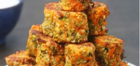 1 κολοκυθάκι 1 γλυκοπατάτα 1/2 μπρόκολο 1 καρότο 1 κουταλάκι του γλυκού αλάτι 1/3 φλιτζάνι παρμεζάνα 1/3 φλιτζάνι φρυγανιά τριμμένη 1 κουταλάκι του γλυκού πιπέρι 1 κουταλάκι του γλυκού σκόνη κρεμμυδιού 1 κουταλάκι του γλυκού σκόνη σκόρδου 1 κουταλιά ελαιόλαδο 1 αυγό Εκτέλεση