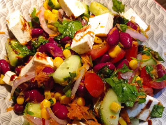 Συνταγή για πολυσαλάτα με φέτα και μπαλσάμικο για το βραδινό μας αλλά και για να συνοδεύσουμε το μεσημεριάνο μας. Με διάφορα λαχανικά, φασόλια, φέτα και μπαλσάμικο, αυτή η πολυσαλάτα αποτελεί ένα πλήρες γεύμα!
