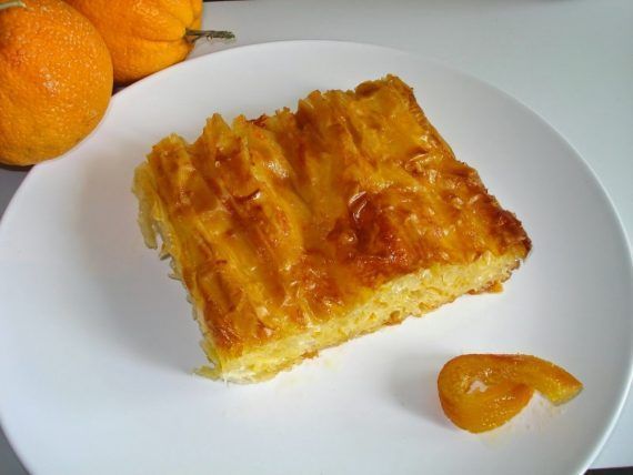 Υλικά •1 πακέτο φύλλο κρούστας για γλυκά [Χρυσή Ζύμη] •4 αβγά, σε θερμοκρασία δωματίου •230 γρ. ζάχαρη •250 ml ελαφρύ ελαιόλαδο και αραβοσιτέλαιο (µισό µισό) •250 γρ. γιαούρτι, 2% λιπαρά •1/2 φλ. γάλα, φρέσκο •1½ κ.γ. µπέικιν πάουντερ •ξύσμα από 3 µεγάλα πορτοκάλια •2 καψουλίτσες βανίλιας