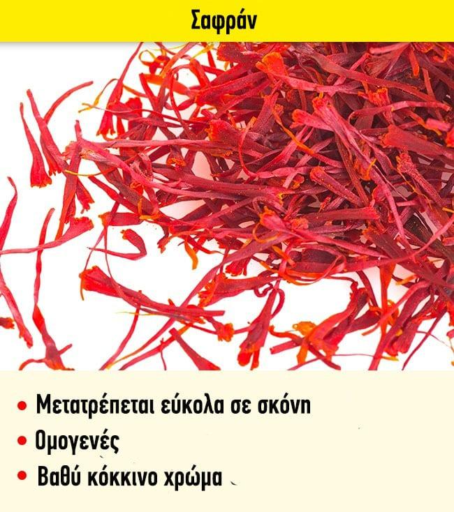 Το αληθινό σαφράν είναι πολύ ακριβό. Αν αγοράσετε σαφράν σε “καλύτερη” τιμή μπορεί να πάρετε μια απομίμηση από κουρκουμά. Το ποιοτικό σαφράν είναι ομογενές και έχει ένα βαθύ κόκκινο χρώμα.