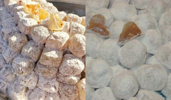 Το μέγεθός τους πρέπει να είναι σαν το μέγεθος των λουκουμιών. Πασπαλίζουμε καλά τα μπαλάκια μας άχνη ζάχαρη για να μην κολλήσουν.