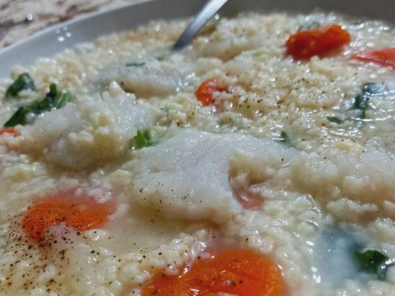 Ψαρόσουπα με τραχανά . Συνταγή για Ψαρόσουπα με τραχανά μπακαλιάρο, σέλινο, καρότο και χυμό λεμονιού. Ιδανική για βρέφη και παιδιά.