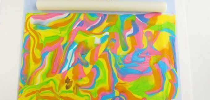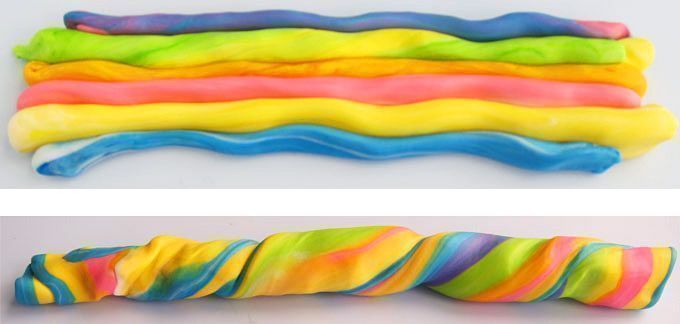 φτιάχνουμε μπαστουνάκια από ζαχαροπαστα σε διάφορα χρώματα και τα στροβιλιζουμε μεταξύ τους