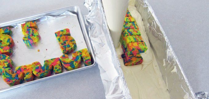 Μόλις κρυώσει το κέικ, το κόβουμε σε φέτες που είναι ακριβώς λίγο πιο λεπτό από τον αριθμό.(προσοχη δε κοβουμε ακομη με το καλουπι,μονο λεπτες φετες κεικ) Βάλτε τις φέτες στην κατάψυξη για τουλάχιστον μία ώρα, μέχρι να ειναι κατεψυγμενες και σταθερες