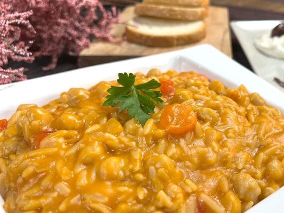 Χυλωμένα κοκκινιστά ρεβίθια με κριθαράκι από τον Παναγιώτη Παπαδάκη για το μεσημεριανό στο ολοήμερο αλλά και για κάθε περίοδο νηστείας. Νηστίσιμο, μαμαδίστικο και vegan φαγάκι!