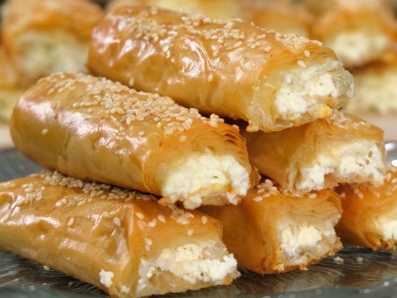 500 g phyllo (12 sheets) 500 g Greek feta cheese 200 g cream cheese 125 g olive oil 125 g melted butter Sesame