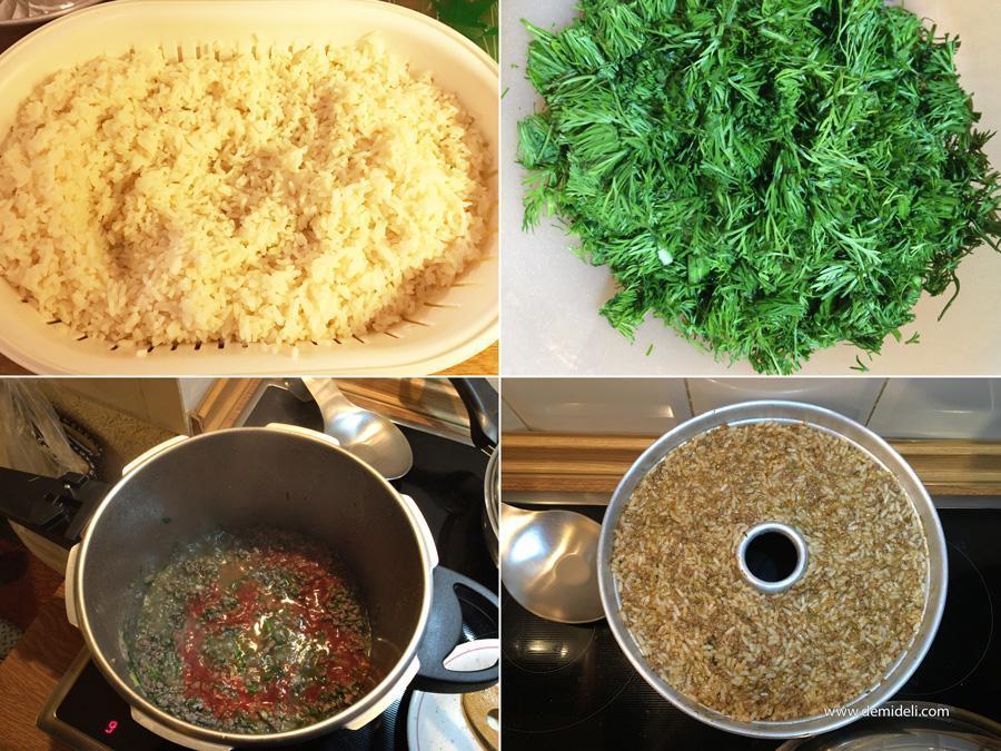 Σε βαθύ μπωλ βάζουμε το βρασμένο ρύζι και ενώνουμε με τον κιμά. Ανακατεύουμε πάρα πολύ καλά έως ότου ενωθούν καλά τα υλικά.