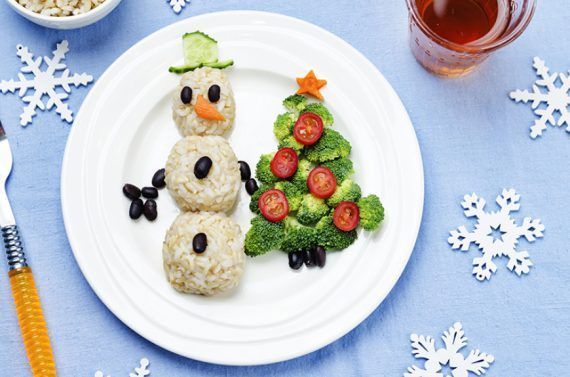 Στολίζουμε την «κορυφή» με μία ροδέλα καρότου κομμένη σε σχήμα αστεριού. Κόβουμε τη φέτα αγγουριού σε σχήμα «καπέλου» και την τοποθετούμε στην κορυφή. Παίρνουμε τα φασόλια ή κόβουμε σε μικρά κομματάκια τις μαύρες ελιές και φτιάχνουμε «τα μάτια», τα δύο «κουμπιά», τα «χέρια» και τη βάση του «δένδρου». Κόβουμε μία ακόμη ροδέλα καρότου και της δίνουμε σχήμα «μύτης». Ο Ρυζοχιονάνθρωπος είναι έτοιμος για το τραπέζι!!