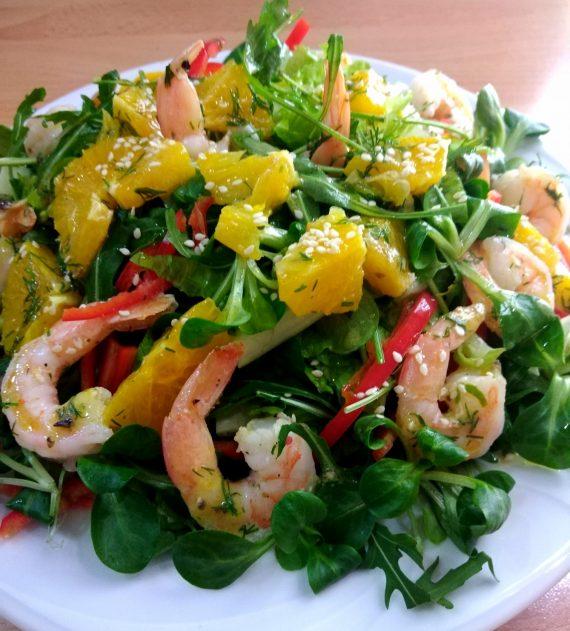 Εκτέλεση για σαλάτα με γαρίδες και σως πορτοκαλιού