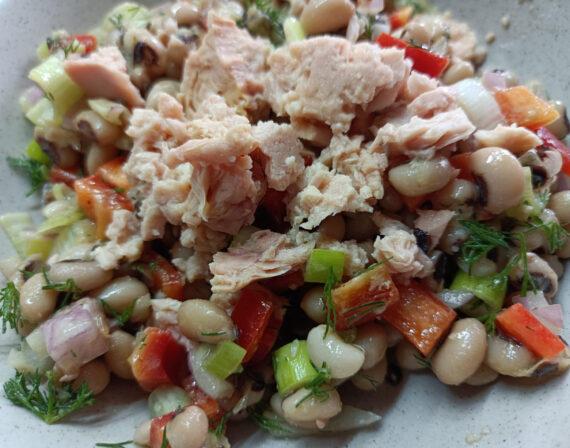 Συνταγη για σαλάτα με μαυρομάτικα και τόνο. Μια σαλάτα με όσπρια που μπορεί να σταθεί και σαν κυρίως γεύμα με λίγες θερμίδες αλλά πλούσια γεύση! Δοκιμάστε την και θα μας θυμηθείτε.