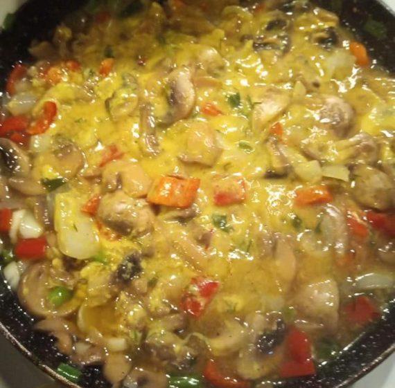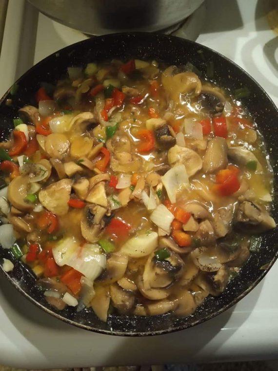 Χρησιμοποίησα φρέσκα μανιτάρια που τα σόταρα σε ελαιόλαδο.. Πρόσθεσα φρέσκο κ ξερό κρεμμύδι πιπεριά κόκκινη Φλωρίνης, λίγο άνηθο. Έσβησα με κρασί και πρόσθεσα μουστάρδα.