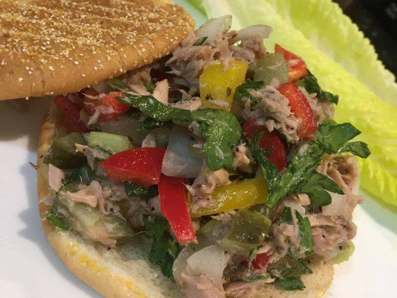 Εκτέλεση για το σάντουιτς με τόνο και λαχανικά