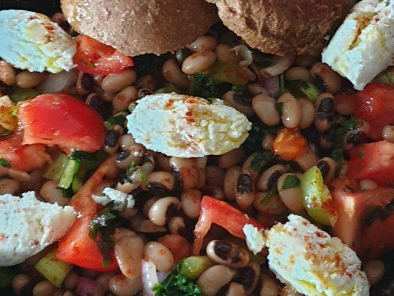 Σαρακοστιανή σαλάτα με μαυρομάτικα . Συνταγή για Σαρακοστιανή σαλάτα με μαυρομάτικα , με ντομάτα, κρεμμύδι, πιπεριές και μυρωδικά για την Σαρακοστή και κάθε περίοδο νηστείας.