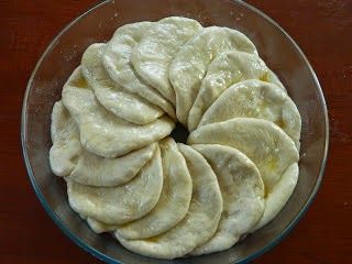Τοποθετούμε σε ένα καθαρό μπολ και αφήνουμε φουσκώσει για 60 λεπτά, καλύπτοντας με μια πετσέτα. Χωρίζουμε σε 13 μπάλες, και ανοίγουμε κάθε μπάλα σε στρογγυλούς δίσκους 22-23 εκατοστών Αλείφουμε με βούτυρο αραιά και τοποθετούμε σε χαρτί ψησίματος, (κομμένα κομμάτια χαρτιού ίσα σε μέγεθος). Στην συνέχεια τα βουτάμε στο υπόλοιπο λιωμένο βούτυρο, ώστε να καλύπτονται και από τις δύο πλευρές και στραγγίστε το βούτυρο για να απομακρύνει την περίσσεια λιπαρότητα. Βάζουμε τις φέτες έτσι ώστε το προηγούμενο κομμάτι ΘΑ πρέπει να καλύπτεται από ήμισυ του επόμενου.