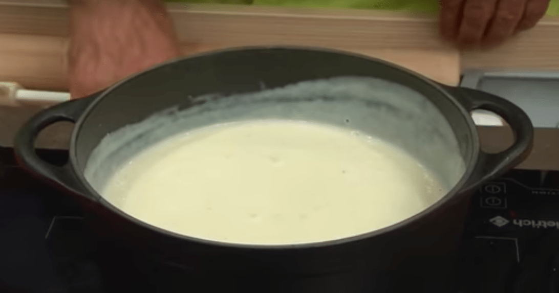 2. Στο μεταξύ, ζεστάνετε το γάλα σε ένα άλλο σκεύος μέχρι να φτάσει σχεδόν σε σημείο βρασμού. Μόλις είναι αρκετά ζεστό, βάλτε σταδιακά το γάλα στο βούτυρο, ανακατεύοντας μέχρι να γίνει λείο. Μόλις βάλετε όλο το γάλα, φέρτε το μείγμα σε σημείο βρασμού και μαγειρέψτε το για 10 λεπτά, ανακατεύοντας συνέχεια. Ρίξτε αλάτι και κύμινο και είστε έτοιμοι!