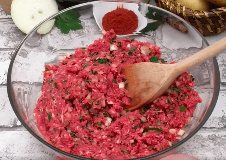 3. Βάλτε τον φούρνο να προθερμανθεί στους 200 βαθμούς. Μετά, πάρτε ένα μεγάλο μπολ και ρίξτε μέσα τον κιμά μαζί με το κρεμμύδι, τον μαϊντανό και την πάπρικα. Βάλτε και λίγο αλάτι και πιπέρι. Μόλις βάλετε τα υλικά, ανακατέψτε τα μέχρι το μείγμα να ομογενοποιηθεί.