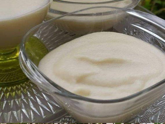 Συνταγή για Σιμιγδαλόκρεμα νηστίσιμη. Σιμιγδαλόκρεμα νηστίσιμη με γάλα καρύδας και μαστίχα Χίου από την Γωγώ Σαμίου.