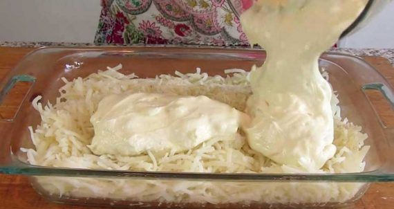 1. Προθερμαίνετε το φούρνο σας στους 176 Κελσίου. Ρίξτε τις τριμμένες πατάτες σας, και μια γενναιόδωρη ποσότητα αλατιού και πιπεριού. 2. Σε ένα μεγάλο μπολ, συνδυάστε τα υπόλοιπα υλικά εκτός από το τυρί τζέντας. Ρίχνουμε το μείγμα πάνω από τις τεμαχισμένες πατάτες και από πάνω το τυρί τσένταρ. 3. Ψήστε για 50 λεπτά ή μέχρι να είναι αφρώδη και να έχει ροδίσει το μείγμα σας.