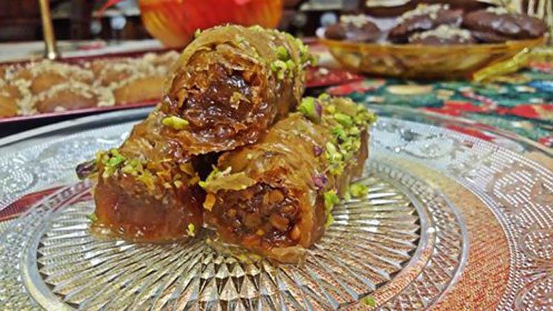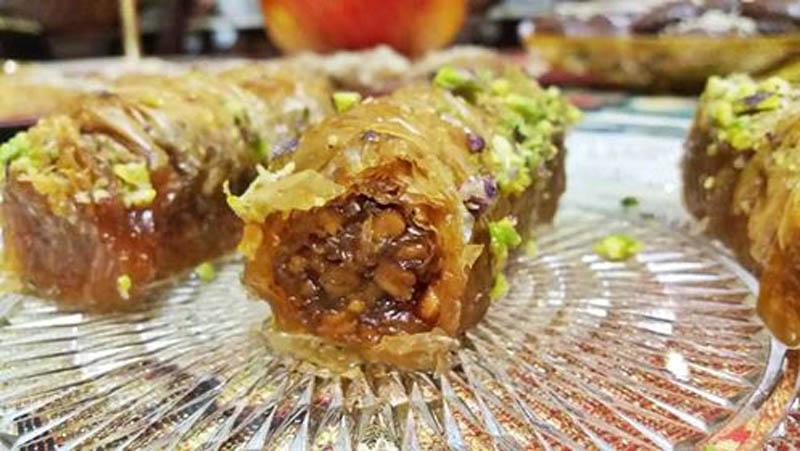 Κόβουμε το σαραγλί σε κομμάτια όχι επιφανειακά αλλά μέχρι κάτω – το κάθε ρολό το έκοψα σε 3 κομμάτια – και το με πινέλο λαδώνουμε καλά τις γωνίες του γλυκού και το περιχύνουμε με το υπόλοιπο ελαιόλαδο να πάει σε όλο το γλυκό. Το αφήνουμε λίγη ώρα να τραβήξει το λάδι και το ψήνουμε για 1,5 ώρα, ανάλογα το φούρνο μας.