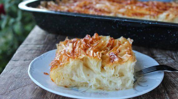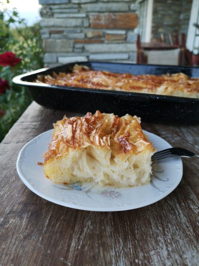 500 gr. filo pastry sheets 4 eggs 200 gr. sugar 2 tsp. baking powder 2 vanillins 250 gr. strained yogurt