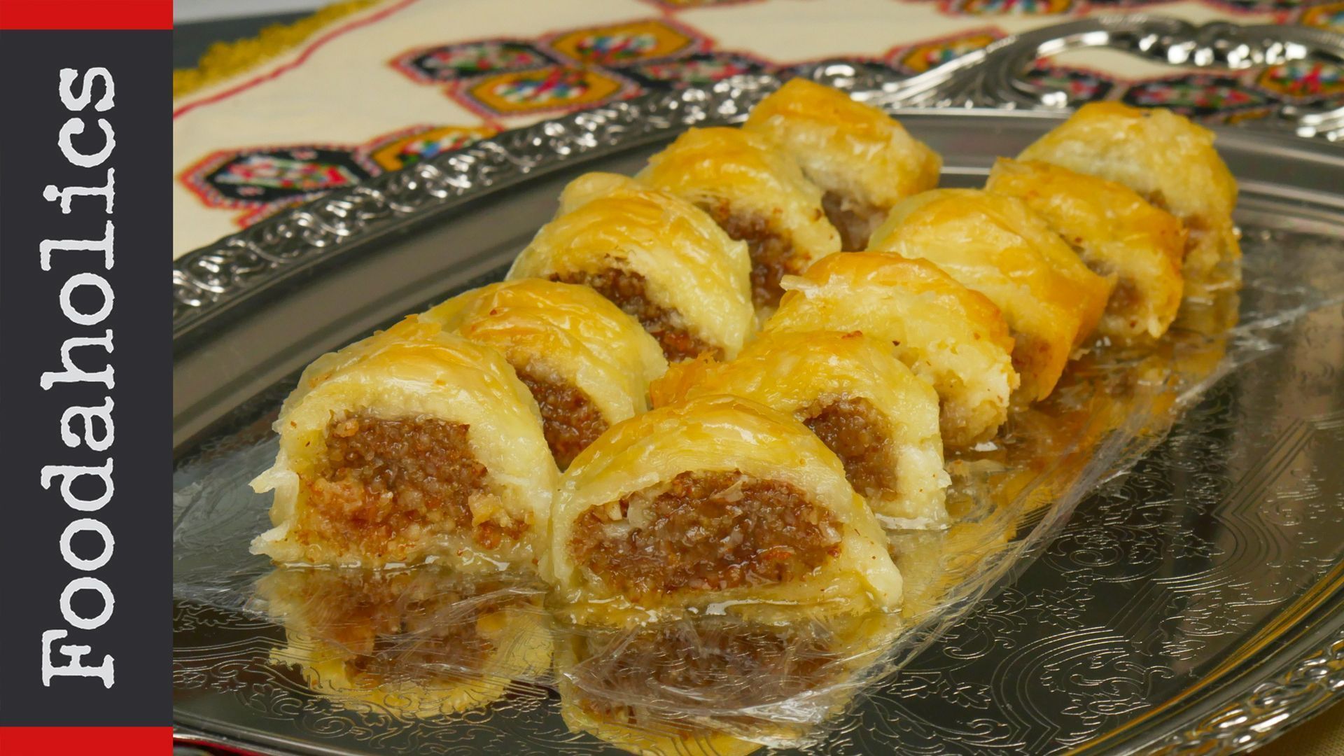 Βάζουμε την ζάχαρη να βράσει μαζί με το νερό για 5 λεπτά. Αρωματίζουμε με τις βανίλιες και τον χυμό από το λεμόνι. Στους αλεσμένους ξηρούς καρπούς (καρύδια, αμύγδαλα, συνδυασμό των δύο) βάζουμε την κανέλα, την τριμμένη φρυγανιά, το μέλι και ανακατεύουμε. Προαιρετικά μπορούμε να βάλουμε καβουρδισμένο σουσάμι και λίγο νερό. Παίρνουμε 3 φύλλα μαζί και τα βουτυρώνουμε καλά με λιωμένο βούτυρο. Στην μία άκρη απλώνουμε γέμιση και τυλίγουμε σε ρολό. Πατάμε τις δύο άκρες να συμπιεστούν. Τοποθετούμε τα ρολά σε βουτυρωμένο ταψί ή πυρίμαχο σκεύος (40×27 εκατοστά) Τα κόβουμε σε μπουκίτσες και βουτυρώνουμε. Ψήνουμε στους 180 βαθμούς μέχρι να ροδίσουν. Όσο το γλυκό είναι καυτό σιροπιάζουμε με κρύο σιρόπι. Για καλύτερο αποτέλεσμα σερβίρουμε μετά από 12 ώρες.