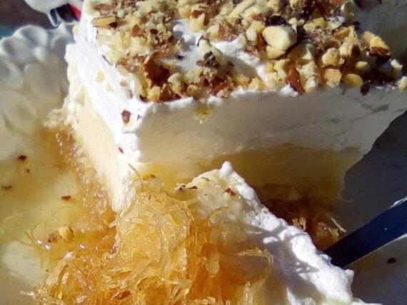 Εκτέλεση για την βάση κανταΐφι στο σιροπιαστό γλυκό με κρέμα