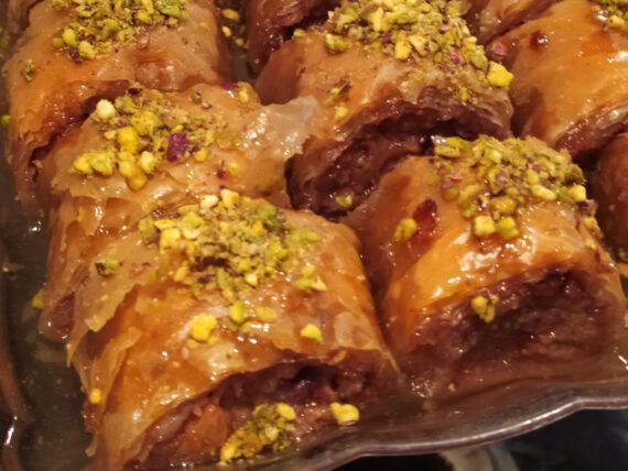 Συνταγή για σιροπιαστό γλυκό με μήλο, καρύδια μελωμένο σιρόπι και τραγανό φύλλο κρούστας .