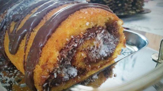 Σιροπιαστός κορμός με γέμιση και επικάλυψη πραλίνας φουντουκιού και ινδοκάρυδο. Λαχταριστή συνταγή για ένα πεντανόστιμο γλυκό που λιώνει στο στόμα. Αυτός ο κορμός δεν έχει γάλα και βούτυρο, ενώ το κονιάκ το απογειώνει γευστικά. Ιδανικό σιροπιαστό γλυκό για γιορτές, κέρασμα, αλλά και τα Χριστούγεννα!