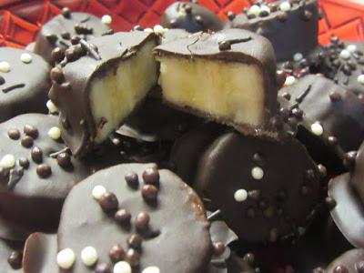 Λιώνουμε την σοκολάτα σε μπεν μαρι ανακατεύουμε με την μια κουταλιά λάδι κόβουμε χοντρές φέτες μπανάνας και βουτάμε μέσα..βάζουμε στο ψυγείο να παγώσουν!!