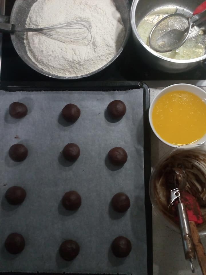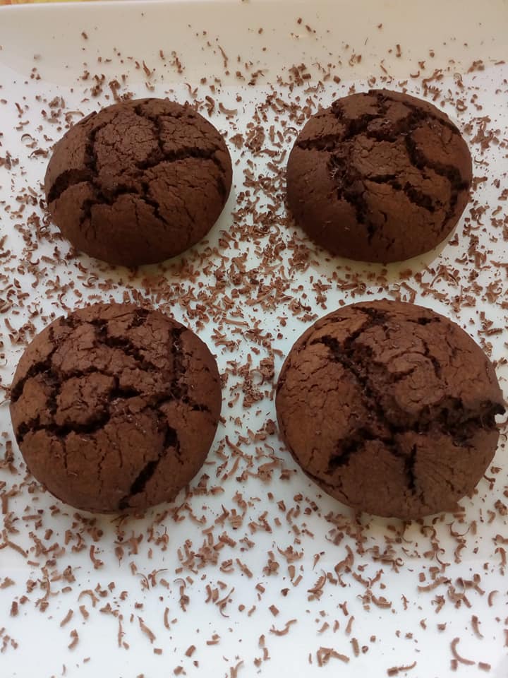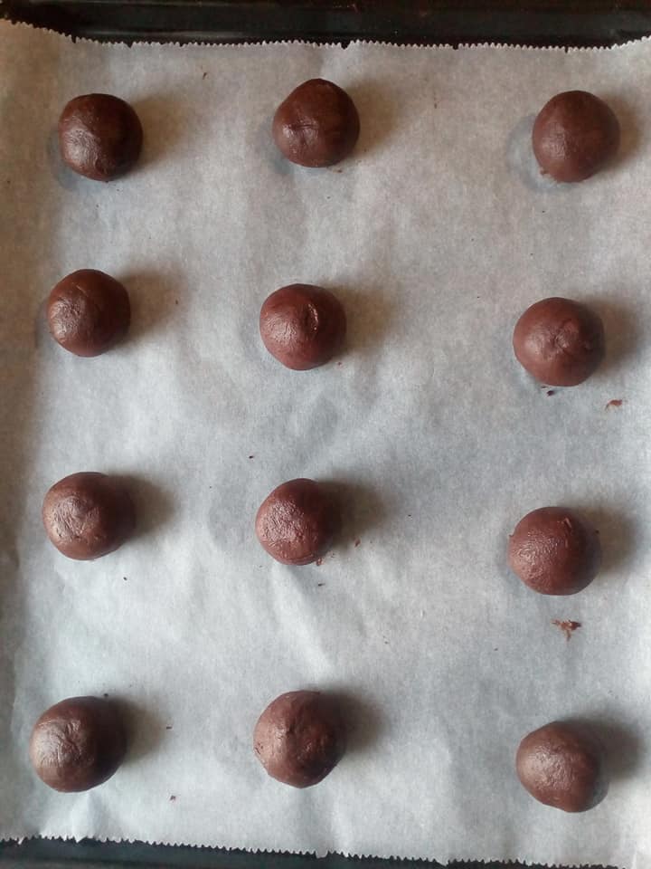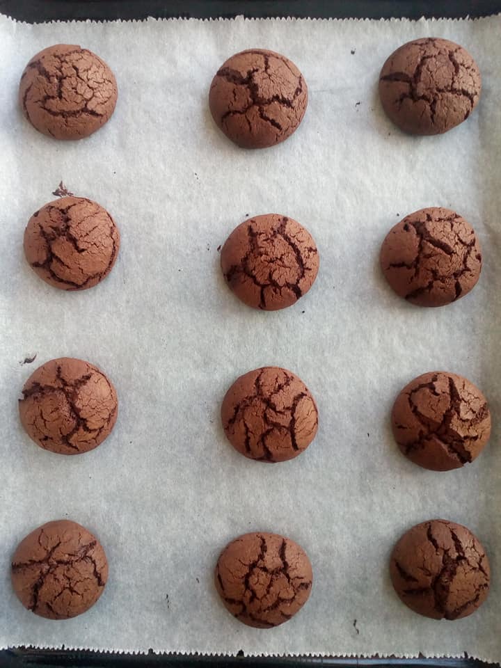 Εκτέλεση Τοποθετούμε στο ταψί του φούρνου μια λαδόκολλα. Χτυπάμε τα αυγά με την ζάχαρη, το βούτυρο, την κουβερτούρα, το κακάο, το μπέικιν, το αλάτι και το αλεύρι και βάζουμε στο ψυγείο για μισή ώρα. Βάζουμε την λαδόκολλα στο ταψί παίρνουμε το κουπ (το κουτάλι παγωτού ) βάζουμε ζύμη και τοποθετούμε στην λαδόκολλα αραιά πατάμε λίγο για να γίνουν πλατιά ψήνουμε σε προθερμασμένο φούρνο στον αέρα στους 180 βαθμούς μόνο για 9 λεπτά όταν τα βγάλουμε θα είναι αρκετά μαλακά όταν κρυώσουν θα σφίξουν.