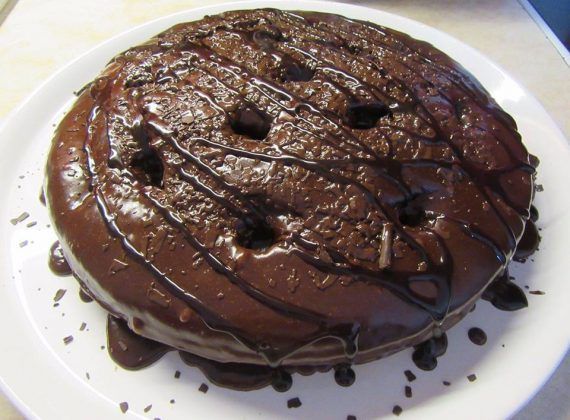 2 Αυγα 1/2 κουπα ζαχαρη 1κουπα γαλα 1/2 κουπα λαδι ελαφρυ 2 κουπες αλευρι φαρινα 1πακ μπεικιν. 1 βανιλια Για την επικαλυψη 1κουτι γλασο σοκολατας ετοιμο!!