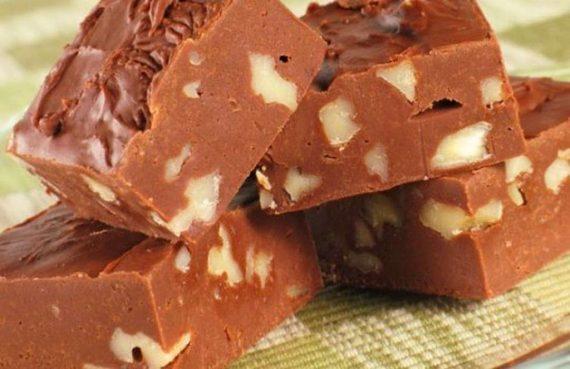 Λιώνετε τη σοκολάτα με το ζαχαρούχο γάλα σε μπεν μαρι και ανακατέψτε στο τέλος και τα καρύδια.