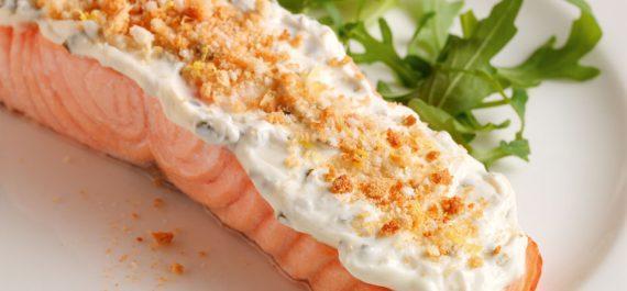 Υλικά για 4 4 φιλέτα σολομού (περίπου 200 γραμμάρια το καθένα) 4 κουταλιές της σούπας φρυγανιά τριμμένη Ξύσμα από ένα λεμόνι 160 γραμμάρια PHILADELPHIA Σαλάτα για γαρνίρισμα
