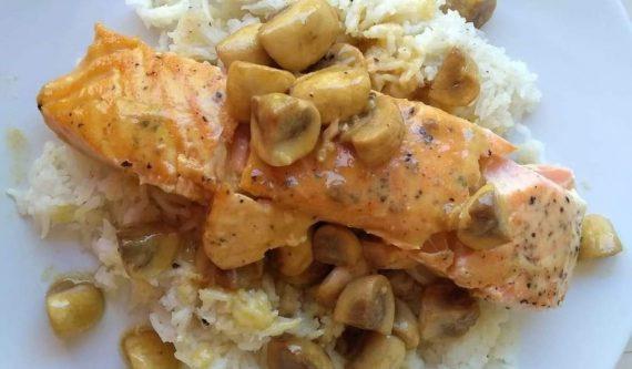 Σολομός με σάλτσα μουστάρδας και μανιτάρια