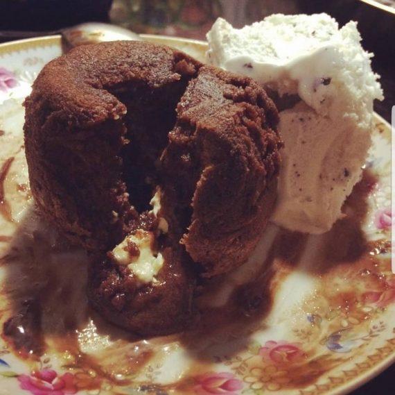 Συστατικά 200 γρ. κουβερτούρα χοντροκομμένη 100 γρ. ανάλατο βούτυρο κομμένο σε κύβους 2 αυγά 2 κρόκους αυγών 110 γρ ζάχαρη άχνη 35 γρ. αλεύρι γ.ο.χ. κοσκινισμένο 4 κ.γ. φιστικοβούτυρο 4 κ.γ. dulce de leche 1 κ.γ. εκχύλισμα βανίλιας λίγο αλάτι λίγο βούτυρο ακόμα και κακάο για να βουτυρώσουμε τις φόρμες