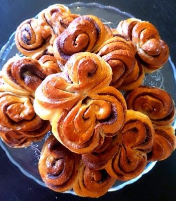 Φτιάχνουμε ρολό ξεκινώντας απο τη μεγάλη πλευρά και τυλίγοντας προς τα μέσα και κόβουμε σε ροδέλες.